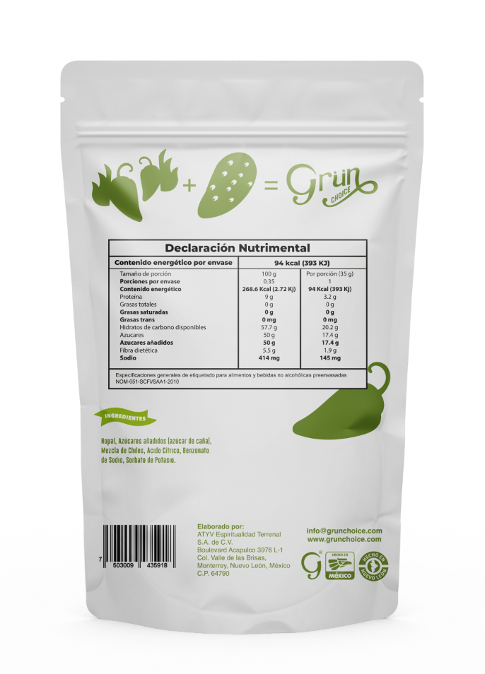 INGREDIENTES: Nopal, azúcar, mezcla de chiles, ácido cítrico, benzoato de sodio, sorbato de potasio.